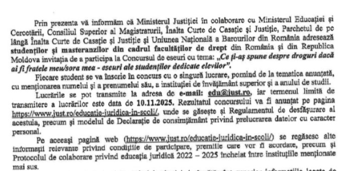 ”Ce ți-aș spune despre droguri dacă ai fi fratele meu/sora mea – eseuri ale studenților dedicate elevilor”